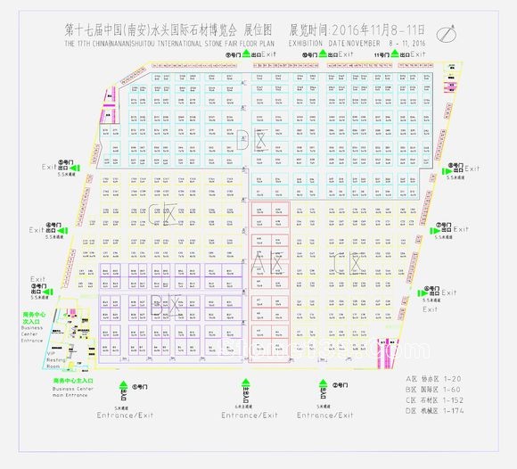 第17屆石博會展館,展館布局規劃更合理。我們規劃形成橫縱各3條主通道,這樣每一家參展企業基本上