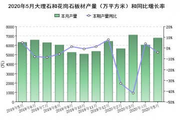 日前從國家統計局和中國建材聯合會了解到,隨著國內疫情好轉,全國大理石和花崗石板材產量明顯上升。2020年5月,全國大理石和花崗石板材產量為6784.06萬㎡,比4月份(3777.16萬㎡)增長79.6%,但比去年同月仍降低…