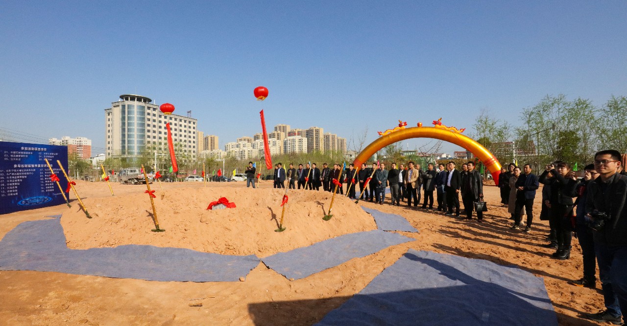 與會市領(lǐng)導共同為中部石材展館綜合體項目奠基。