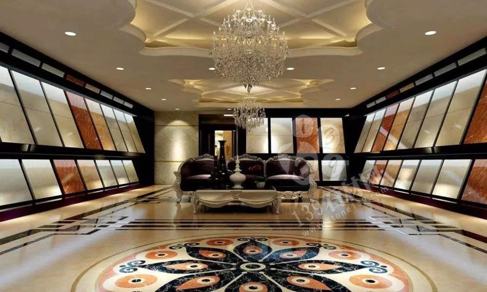 在進行拼花工藝時,天然天然石是成品,便于購買,且線條流暢,銜接自然,無縫拼接。對比天然石瓷磚,因要考慮冷縮熱脹的問題,不能成品出售,花色生硬不自然,且定制成本不菲。