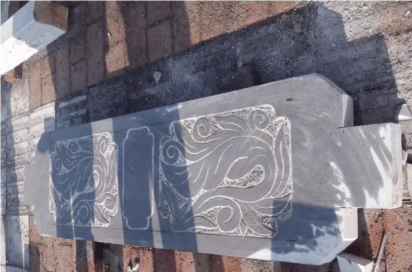 ⑶雕刻前應仔細選擇材料:半成品青石板(條)不得有裂縫、隱殘、污點、紅白線、石瑕、石鐵等缺陷。