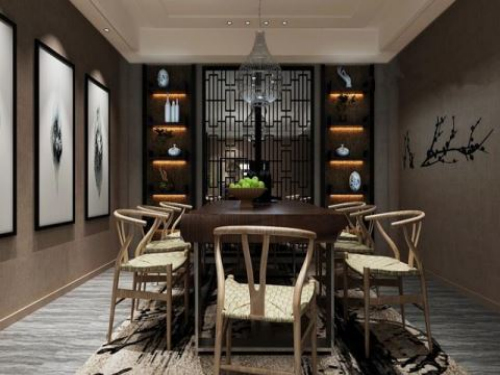 2.建材運用——(1)實木,建議使用酸枝木或大葉檀等高檔硬木,做成花板、條案、長椅圈椅、羅漢床等等,木是打造中式風格最重要的建材;(2)大量使用中式圖紋元素的裝飾擺件,字畫、匾幅、掛屏、盆景、瓷器、古玩、屏風、博古架等都是不錯的選擇;
