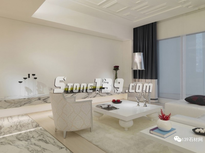 分享一些白色大理石裝飾的案列,按場景分類包括 浴室、客廳、走廊、大廳、臥室等等,按具體的應用分類有臺面、桌面、浴室浴缸、圓柱電視背景墻、拼花、屏風等等,按白色大理石的材質分類有魚肚白、大花白、雪花白、細花白、中花白等等白色大理石產品