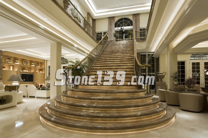 過去由于石材的機(jī)械切割工藝跟不上,是先安裝扶手,然后將磚體開一個(gè)豁口再貼上去,但是這樣做的結(jié)果就是,一眼看到樓梯上就發(fā)現(xiàn)有一個(gè)長方形的豁口,不美觀,但因?yàn)楣に囀芟抟仓荒苓@樣。