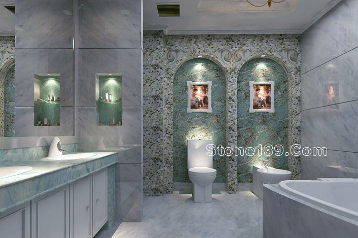 推薦用途:室內地面、室內墻面、臺面板、柱面、門窗裝飾等。 藍海大理石裝飾私人泳池,全世界僅有兩個。一個是中東某國王,另一個是安東里尼的老板。這個泳池底部運用稀有大理石品種藍海,優美的色彩,讓泳池像海洋般湛藍,置身其中猶如在大海中遨游