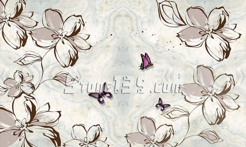大理石拼圖,拼板背景墻效果,在原有的花紋基礎上加上一些點綴,達到虛虛實實的夢幻美