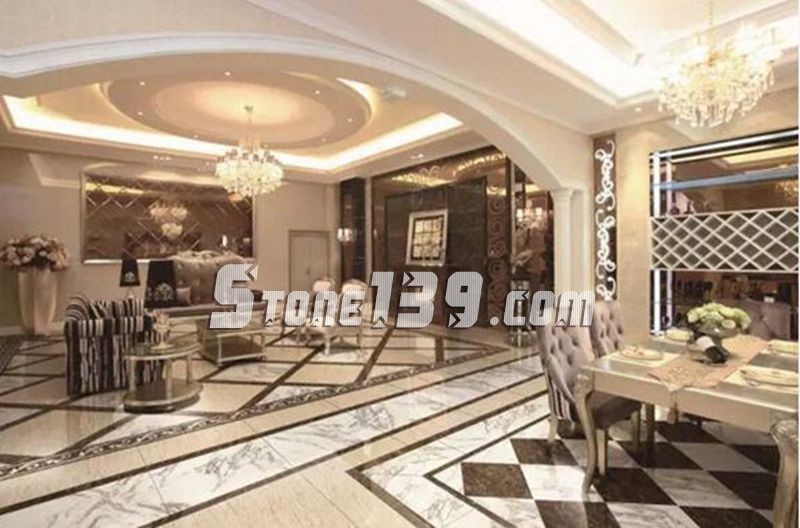 拼花結(jié)合石材本身的紋路 白色和深啡色的搭配 典雅高貴 氣質(zhì) 在配合歐式復(fù)古的軟裝家具