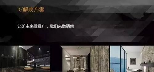 所以呢,我覺得我們應該清楚的曉得:礦主應該來做推廣,我們應該來做銷售。所以未來,我相信大家應該知道,我們做石材的應該跟礦主是什么關系。或者我們應該是拿錢還冤枉的買很多的無用的石頭放在倉庫里頭嗎?你的錢沒有那么多了。