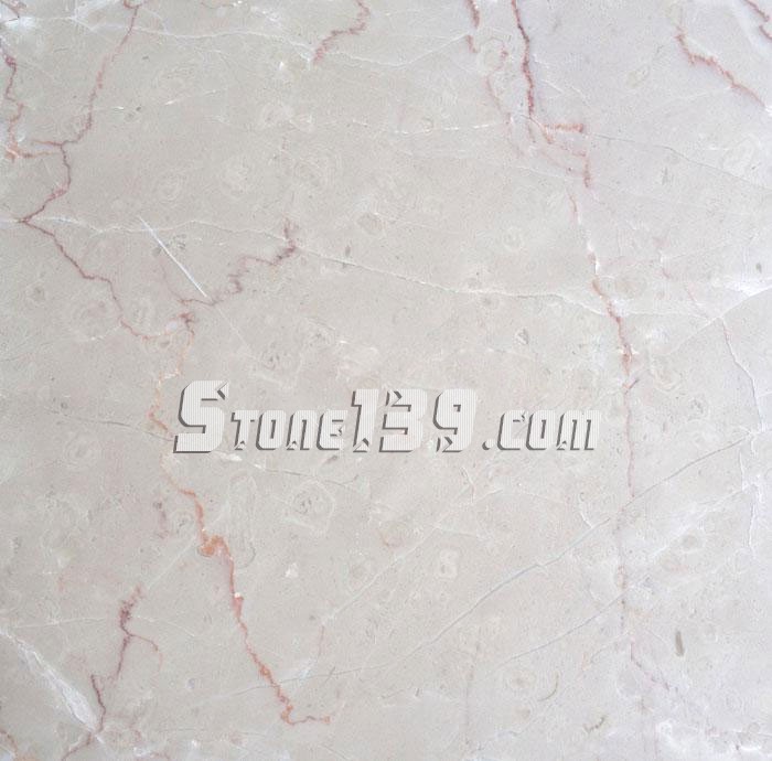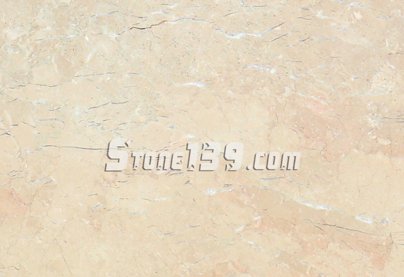 此礦主要有2種顏色材料,為Pinkish,底色泛紅或紅線(斑)呈網狀分布,另一類為我司所選之材料,底色較白,或粗或細的玻璃根,或長或短分布,部分有貝殼斑,或呈砂粒狀結構、材質細膩,類似世紀米黃之深色(泛黃、新世紀米黃或老礦世紀米黃中較差的),光度好。缺陷:有紅色縫合線、黃豆大貝殼斑過多,玻璃根過于密集。