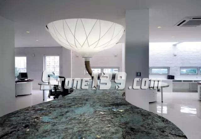 寶石藍富有大自然之色彩、質感濃厚、高雅大方,紋路清晰、流暢。自然界中藍色石的品種極其稀有,室內裝飾設計中主要是作為臺面板和背景墻,利用其紋理變化的和色彩搭配給整個空間增添了一份地中海的風情,大大提高建筑產品的裝飾效果和檔次,使其更具高貴價值和設計魅力。
