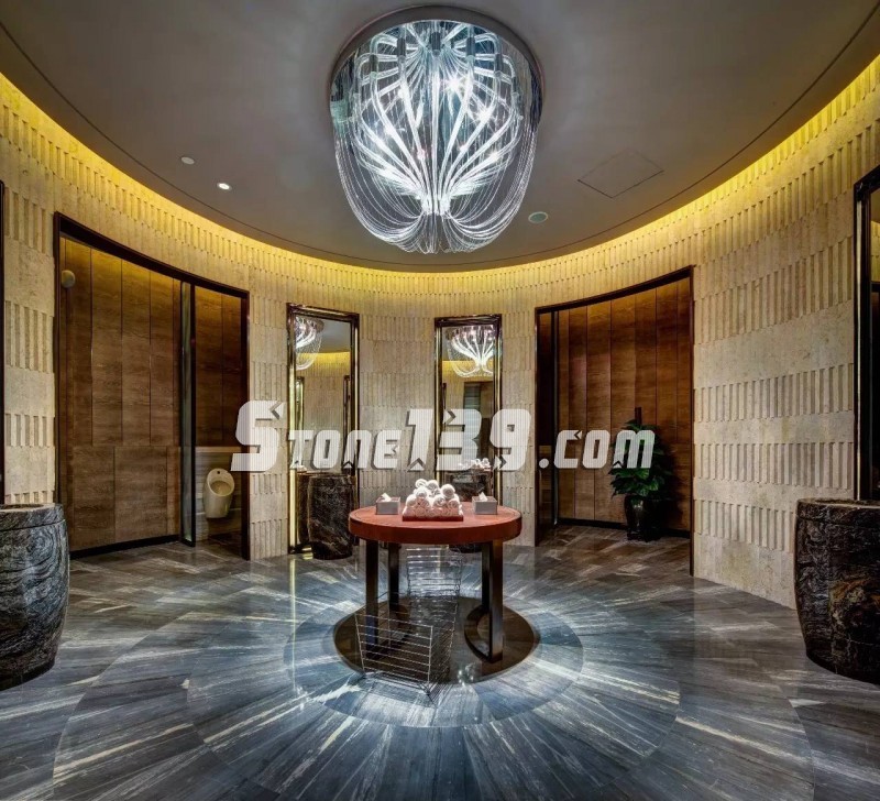 從上面單一的拼貼效果來看,單一大理石拼貼的主要特點是大理石本身紋路豐富,有層次感,配合自身紋路的搭配可以塑造各種造型,加上設計師的靈感設計,整體非常協調,單一不單調。以筆者的經驗,此類大理石品種有貴州木紋系列大理石,古木紋系列,大花白系列。