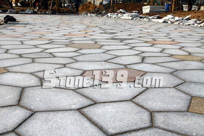 (5)把天然石材/加工成小規格石材/產品(100*100mm的正方形、邊100mm或80mm的六邊形和菱形等),專用于鋪裝廣場、園林道路等室外地面。其材質、品種、色調、產地和石材/工程板材基本相同,以花崗石材/質為主。在石材/廣場磚業內,淺色調產品居多(稱主色調產品),黑、紅色調見少(稱配色產品)。所用配色產品一般使用較為高檔和華貴的品種。
