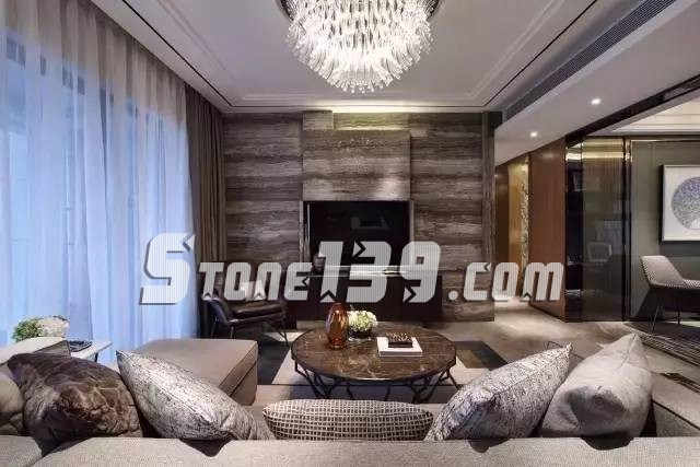 作為客廳的主視覺焦點,背景墻往往是一個裝飾亮點,天然石材花紋自然,能很好地表現創作意圖,適合在墻面上做藝術造型。