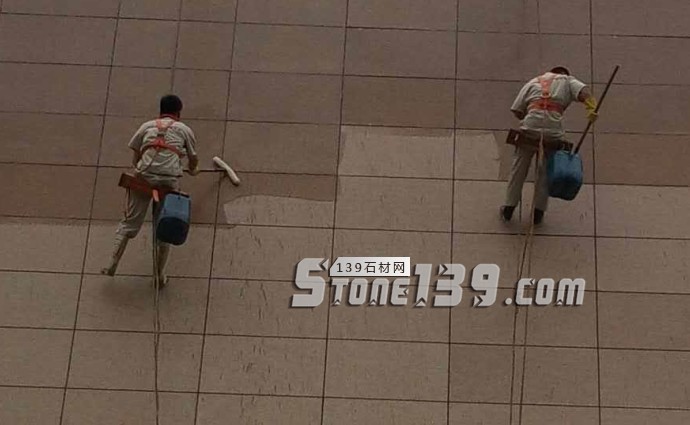 步驟九:用水槍等工具,將石材表面清理干凈。并晾干。