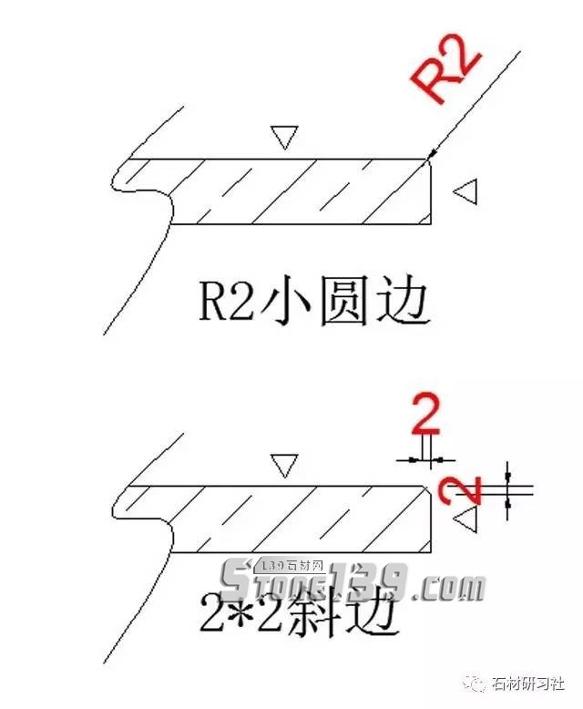 ▼下圖是磨邊截面,磨下一點的邊型,利于可以有足夠的厚度來擋住洗手間的水,防止往外跑。