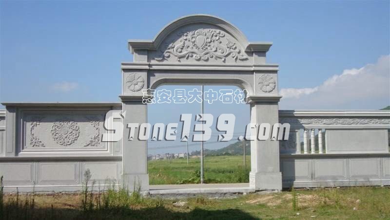 石材院子 圍墻 拱門配套 帶浮雕 欄桿 窗花