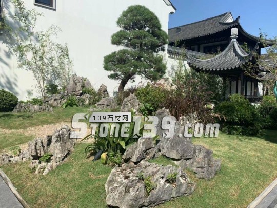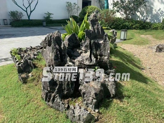 大英石:大英石形狀是凹凸不平,尺寸一般為1-3米不等。因大英石外形巨大,常用于制作假山石景。大英石色澤青黛,有的間有白紋,形體漏透,造型雄奇,扣之聲微,是漏和透的典型,適宜獨立成景。