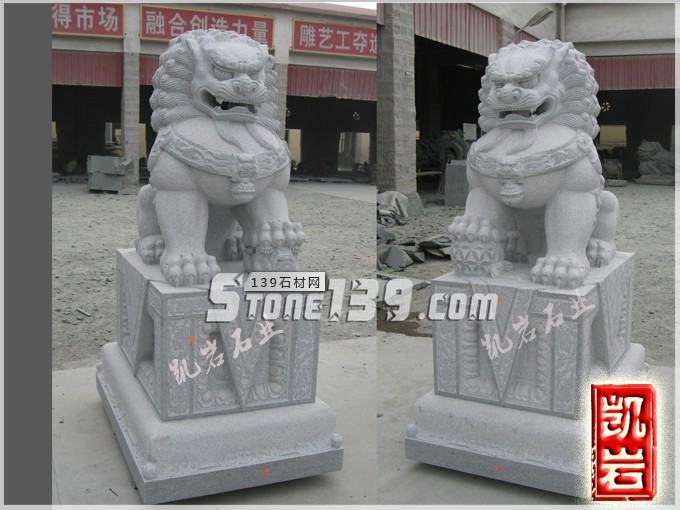 石雕動物獅子大體是漢族傳統文化中常見的辟邪物品之一。宮廷石獅一般置于宮殿、陵墓前,在形體力度和內在精神氣勢上氣吞山河、威猛雄壯;宗教石獅多出現于佛教 石窟之中,其形象對之后中國石雕獅子造型的演變產生很大影響;民間石獅最普及也最有生命力,百姓把獅子看成能驅惡辟邪的瑞獸,因此,在民間數量最多的是牌坊門墩獅和鎮宅獅,此外,還有拴娃獅、壓繃獅、印紐獅等等。造型的隨意性和夸張性是民間獅子形象的一個突出點,格調清新,情趣盎然,并運用象征、會意、諧音等手法來創作石雕動物獅子形象,賦予了喜慶吉祥色彩,充滿著濃郁的生活氣息。