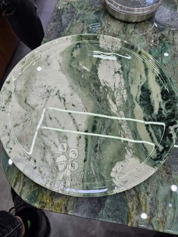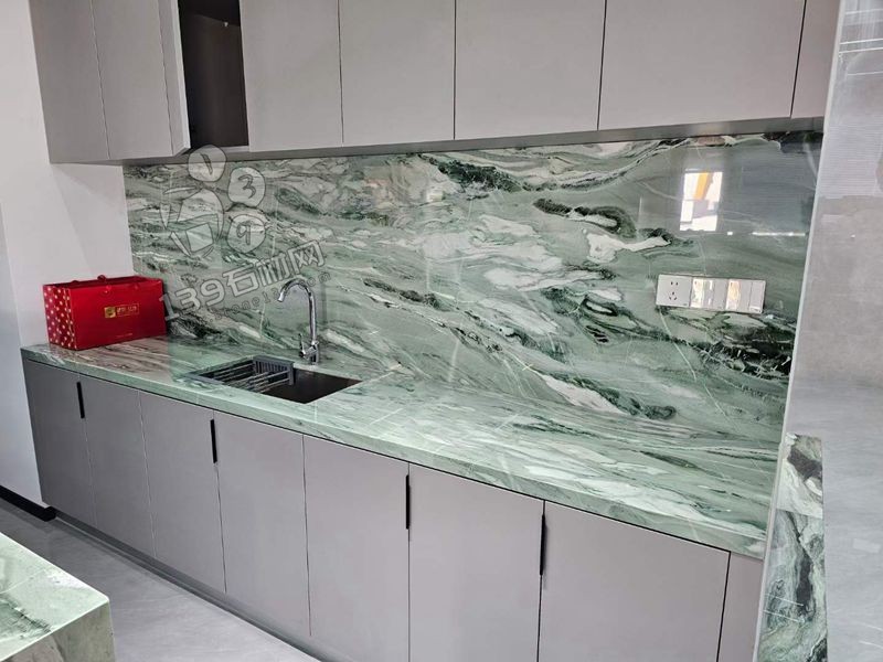 這款大理石的紋理獨特,仿佛是大自然的藝術品。它的顏色清新自然,呈現出一種淡淡的綠色,就像是清晨的迷霧籠罩著森林,給人一種寧靜、神秘的感覺。